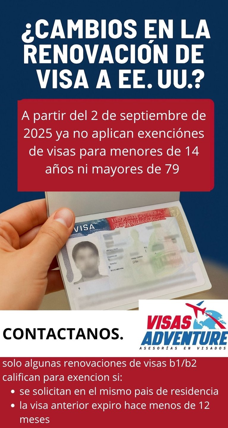 El 25 de julio de 2025, el Departamento de Estado de EE. UU. comunicó que, a partir del 2 de septiembre de 2025, se aplicarán normas más estrictas sobre las exenciones de entrevista en visas no inmigrantes (turista B, estudiante F/M/J, trabajo H/L, etc.). La mayoría de solicitantes, incluidos niños menores de 14 años y adultos mayores de 79, deberán asistir presencialmente a una entrevista, excepto las siguientes excepciones: